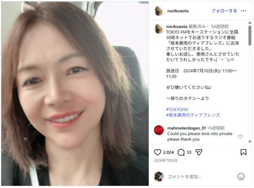 そんな青田典子さん、その直前にも自身のインスタグラムを投稿。